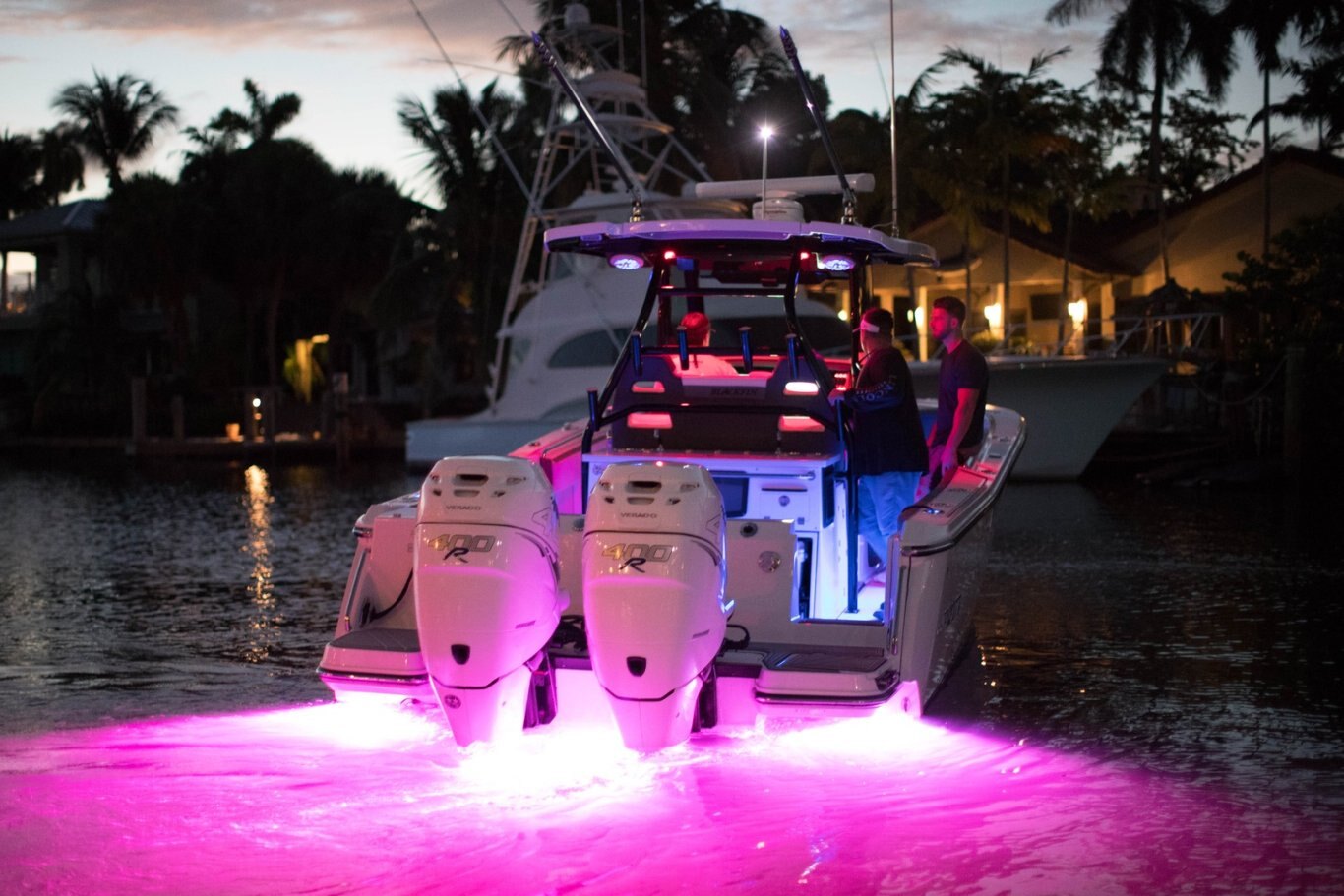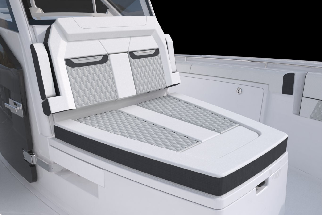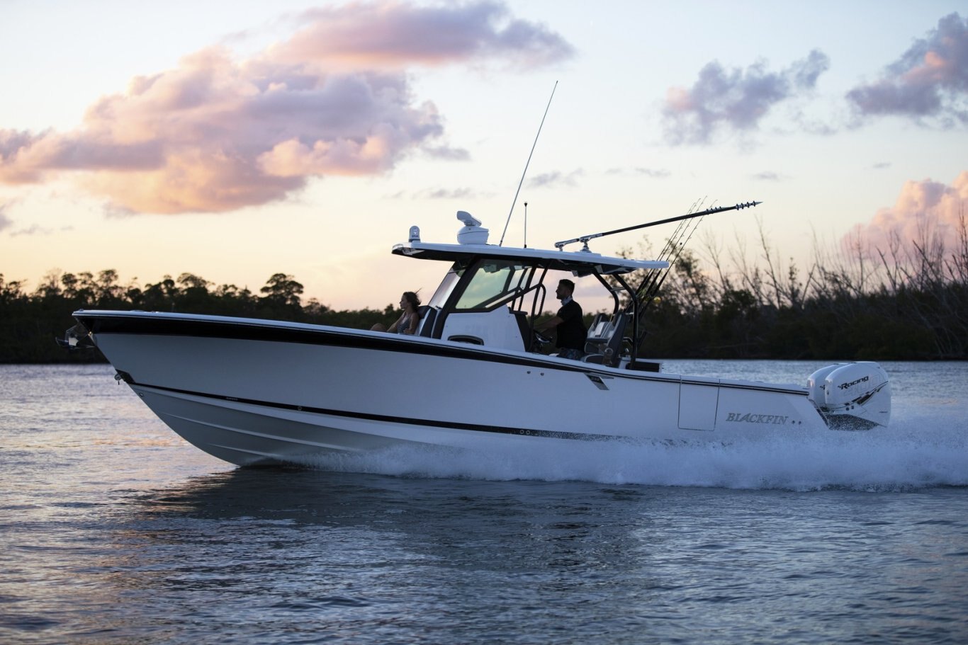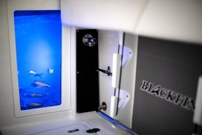 Winner of a Miami Innovation Award, the 332CC is proven innovational design at its best. Enjoy an abundance of perfectly designed fishing amenities like a tackle rigging station, insulated baitwells, and in-floor fish boxes as well as modern conveniences such as integrated storage, custom seating, dive/boarding door, telescoping, and recessed swim ladder, and full-size head compartment with Pantographic door. Meanwhile, captains will appreciate the leaning post with a custom helm seat, flip-up bolster, and command center.