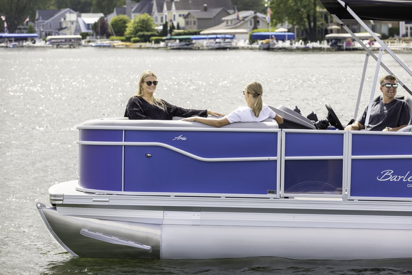 Do you have a large crew that demands lots of seating?  The quad-lounge is the layout for those who want to spread out and relax on the ultra-comfy Barletta chaise lounges.  The way the furniture wraps around the perimeter of the boat is also great for keeping curious kiddos and pets inside the boat while underway.