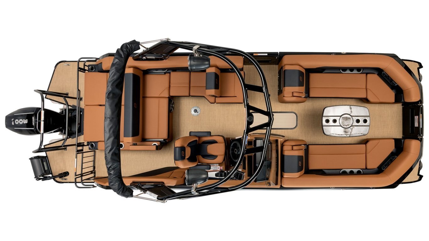 • Sport Edition including premium upholstery textured vinyl and LED lighting on floor, bimini top, pontoon logs, speakers, and fixed cup holders