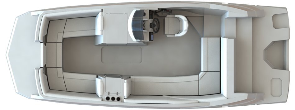COCKPIT 750 GPH Easy-service Cartridge Automatic Bilge Pump Premium Helm Seat Flip-up Bolster 4 Mooring Cleats In-floor Storage
