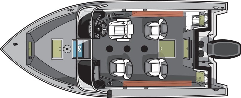 MISCELLANEOUS Cupholders (2) Full Vinyl Cockpit and Casting Platform Power Point Cleats (4) Under Console Storage