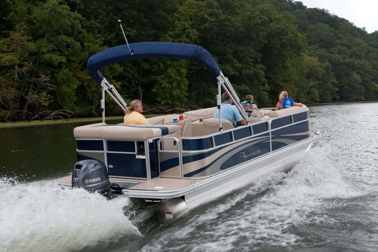Yamaha's large anti-splash plate, standard on F70 models, helps keep water from splashing up between the leading edge of the outboard and the boat, resulting in a much dryer ride. Located on the front of the lower mid-section just above the lower unit, it excels in applications where the outboard is normally run deep in the water, such as pontoon boats.